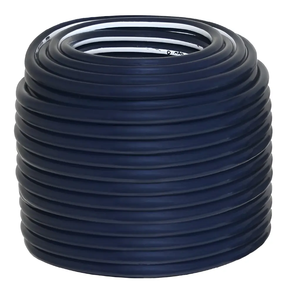 Mangueira Ultra forte Anti-torção Azul 1/2 X 50 metros Jardim Com duas vezes mais resistência em comparação às mangueiras convencionais, a mangueira UltraForte resiste até 15 kgf/cm². Ela conta com duas camadas de PVC e uma camada intermediária com fio de poliéster trançado, dando um total de 2,8 mm de espessura de parede* com anti-torção. Adaptável às torneiras de 1/2″ e 3/4″. Indicação de temperatura: Produto recomendado para uso em água fria. Temperatura máxima de trabalho: 20°C Pressão da água: Pressão máxima de trabalho: 15 kgf/cm² ou 150 m.c.a.
